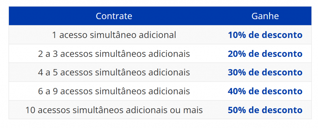 DESCONTO PROGRESSIVO NA CONTRATAÇÃO DE NOVOS ACESSOS SIMULTÂNEOS